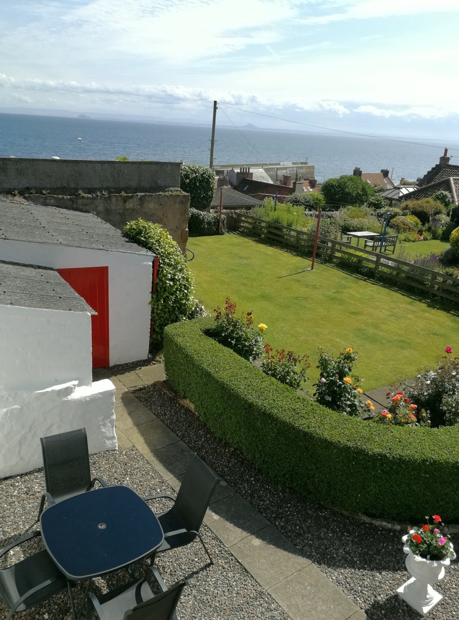Relax in the beautiful south facing with views over the village harbour and the Firth of Forth to North Berwick and the Bass Rock. It is shielded from the wind in three directions and the whitewashed walls of the house and outhouses to the east boundary reflect the sun and help create a beautiful sun-trap on the patio area at the back of the house, which has been enjoyed all year round. Pittenweem has some of the lowest rainfall in the United Kingdom - we call it the Costa del Neuk!