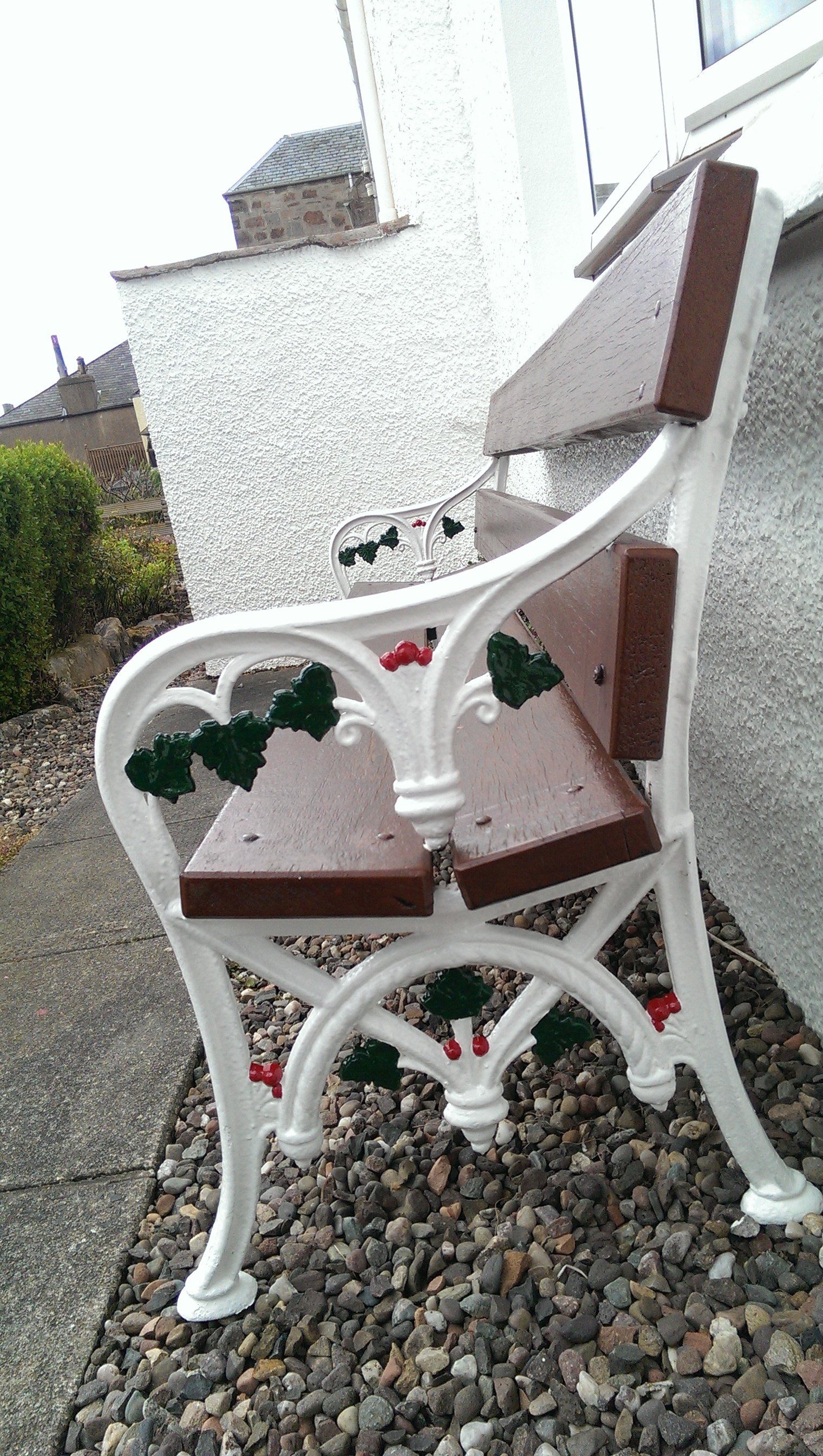 The garden is well equipped with furniture. There is a long garden bench against the rear wall of the house which has over the years become the venue for many a family holiday photograph, a table and chairs (stored in outhouse over winter) and a cushioned swing/hammock seat (warmer seasons again, cushions stored in outhouse). The large lawn area is bounded by alpine and rose beds and also provides facilities for clothes drying.